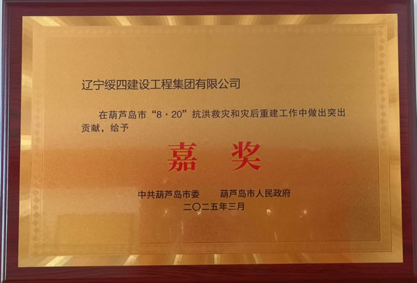 嘉獎:遼寧綏四建工集團在葫蘆島市“8·20”抗洪救災(zāi)和災(zāi)后重建工作中做出突出貢獻