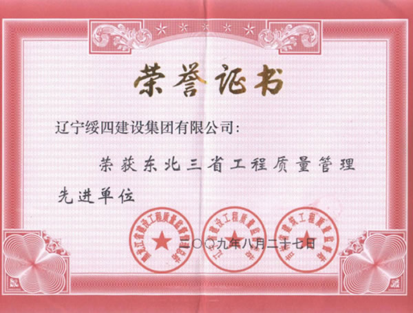 遼寧省工程建設(shè)質(zhì)量管理優(yōu)秀企業(yè)