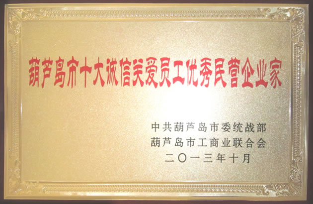 葫蘆市十大誠信關(guān)愛員工優(yōu)秀民營企業(yè)家
