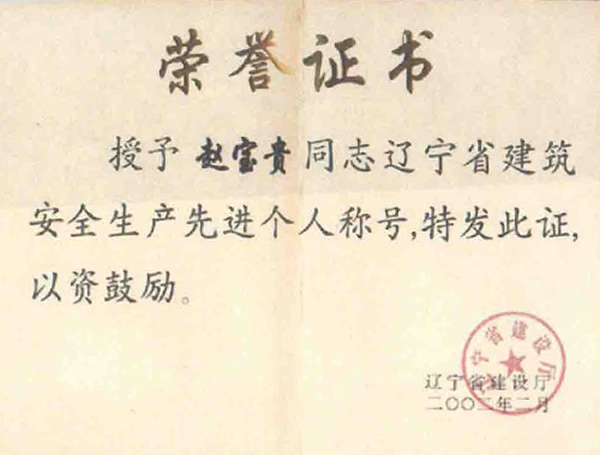 遼寧省建筑安全生產(chǎn)先進(jìn)個人