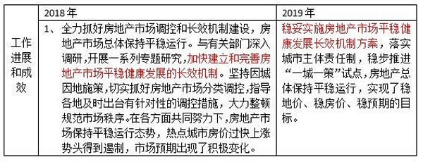 對于2019年的工作進(jìn)展和成效方面,住建部工作會議指出,穩(wěn)妥實(shí)施房地產(chǎn)市場平穩(wěn)健康發(fā)展長效機(jī)制方案,落實(shí)城市主體責(zé)任制,穩(wěn)步推進(jìn)“一城一策”試點(diǎn),房地產(chǎn)總體保持平穩(wěn)運(yùn)行,實(shí)現(xiàn)了穩(wěn)地價(jià)、穩(wěn)房價(jià)、穩(wěn)預(yù)期的目標(biāo)。