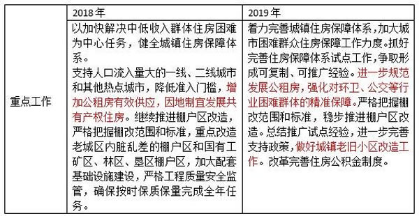 解讀:與2018年相比,此次會議中將租賃住房分成了市場化租賃和政策性租賃兩個(gè)領(lǐng)域。其中,政策性租賃住房首次提到。