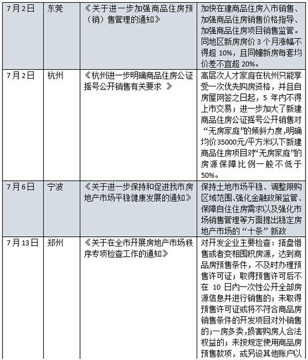 7月以來,包括杭州、東莞、寧波、內(nèi)蒙古、鄭州、深圳等房價(jià)有所上漲的城市開始出臺(tái)房地產(chǎn)調(diào)控收緊政策。