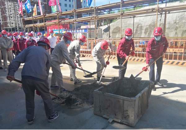 該項(xiàng)目于今年4月21日開工。我集團(tuán)秉承多年來堅(jiān)持的“干一項(xiàng)工程、出一項(xiàng)精品,拓一方市場、交一方朋友”建設(shè)理念,年初承接該建設(shè)任務(wù)之時(shí),就積極策劃配合業(yè)主辦理手續(xù),保證工程按期開工。建設(shè)過程中,項(xiàng)目團(tuán)隊(duì)認(rèn)真編制技術(shù)文件精準(zhǔn)指導(dǎo)施工,實(shí)施樣板制、交底制、驗(yàn)收制等一系列規(guī)章制度,積極推廣應(yīng)用四新技術(shù),履行安全管理、文明、綠色、環(huán)保施工,在封閉管理、物料堆放、車輛沖洗、現(xiàn)場硬化、渣土車封閉運(yùn)輸?shù)确矫媛鋵?shí)揚(yáng)塵治理六個(gè)百分百,嚴(yán)把質(zhì)量關(guān),如期實(shí)現(xiàn)主體封頂。