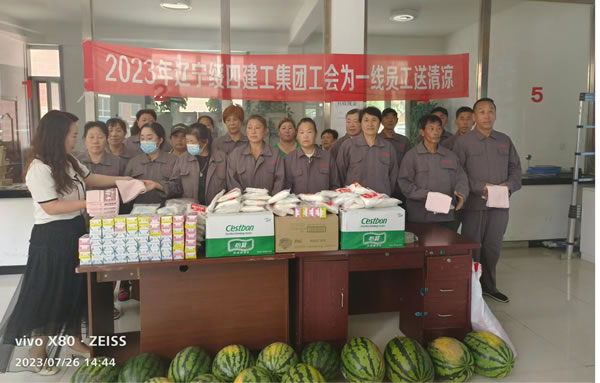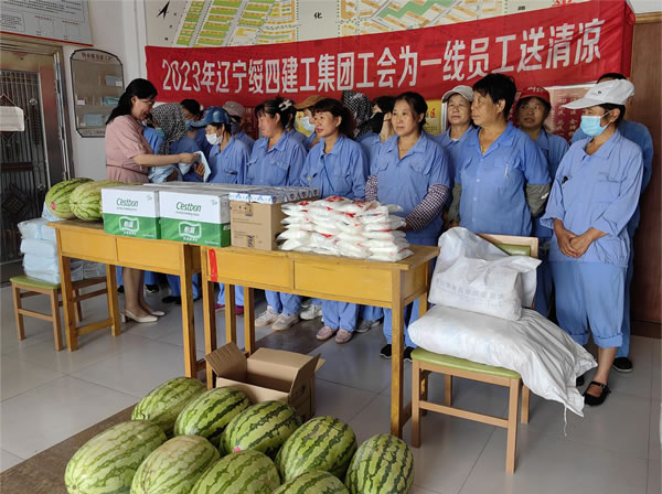 7月25日—28日,遼寧綏四建設(shè)工程集團(tuán)有限公司開展送清涼活動(dòng)。集團(tuán)董事長(zhǎng)趙寶貴親自布置,黨支部書記張艷舫、工會(huì)主席薛桂枝、所屬企業(yè)相關(guān)負(fù)責(zé)人房建、喬揚(yáng)、王剛分別帶隊(duì),慰問高溫下堅(jiān)守在一線的員工們。