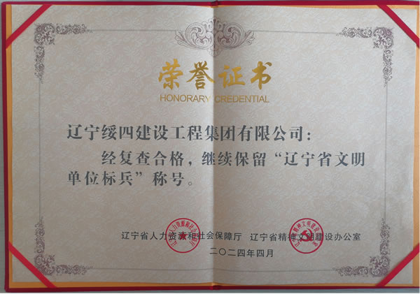 近日,經(jīng)復(fù)查合格,遼寧綏四建設(shè)工程集團(tuán)有限公司繼續(xù)保留“遼寧省文明單位標(biāo)兵”稱號。
