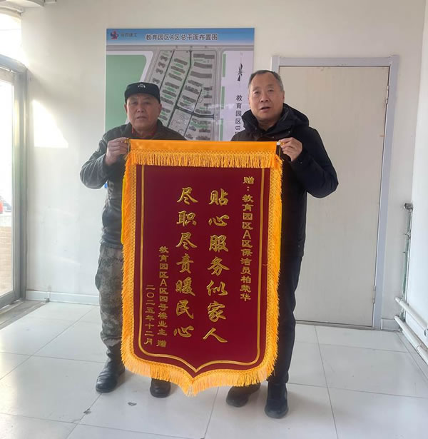 近日,三和物業(yè)A區(qū)業(yè)主接待服務中心傳來暖心喜訊,公司保潔柏榮華憑借日復一日的貼心服務與盡職盡責的工作態(tài)度,贏得了所服務樓棟業(yè)主的高度認可與誠摯感謝,四號樓業(yè)主特意將一面印著“貼心服務似家人 盡職盡責暖民心”的錦旗送到柏榮華手中,以此表達對他工作的肯定與贊許,也為整個物業(yè)服務團隊注入了滿滿的溫暖與動力。