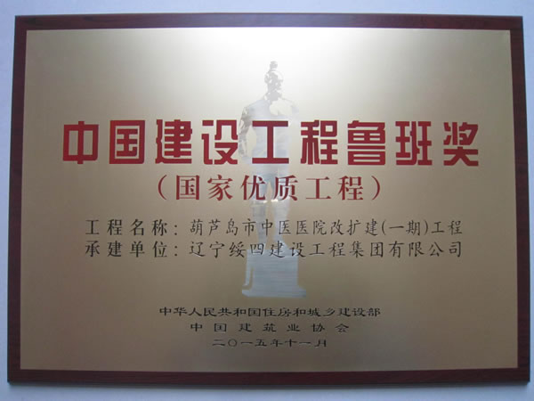 2015年11月17日在北京釣魚臺國賓館召開了“2014~2015年度中國建設(shè)工程魯班獎”表彰大會,集團鐘雷副總經(jīng)理代表公司參加了此表彰大會,由遼寧綏四建工集團承建的葫蘆島市中醫(yī)醫(yī)院改擴建(一期)工程榮獲“2014~2015年度中國建設(shè)工程魯班獎”獎項。