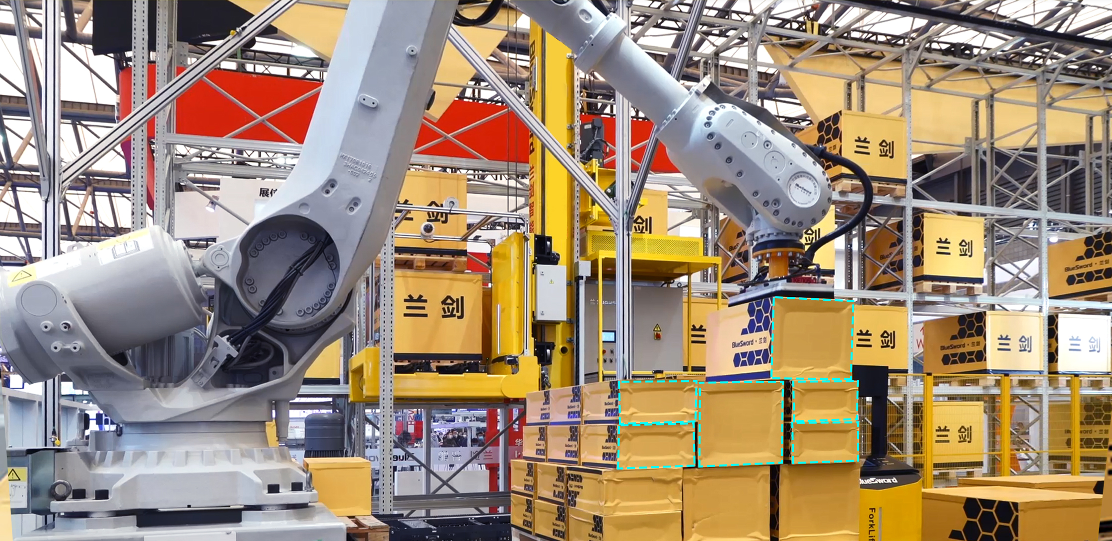 使用基于3D視覺和深度學(xué)習(xí)的料箱識(shí)別與定位技術(shù),可操作不同尺寸的料箱進(jìn)行柔性拆/碼垛。