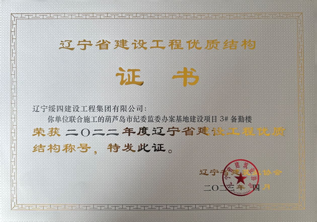 | 葫蘆島市紀(jì)委監(jiān)委辦案基地建設(shè)項(xiàng)目 3# 備勤樓榮獲2022年度遼寧省建設(shè)工程優(yōu)質(zhì)結(jié)構(gòu)稱號(hào) |