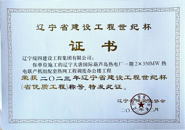 | 遼寧大唐國際葫蘆島熱電廠一期2×350MW熱電聯(lián)產(chǎn)機組配套熱網(wǎng)工程調(diào)度辦公樓工程 榮獲2023年遼寧省建設(shè)工程世紀杯(省優(yōu)質(zhì)工程)稱號 |